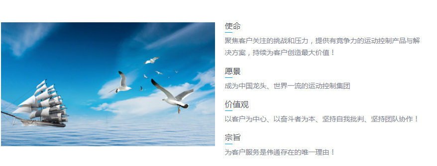 “成就客戶”明確了所有雷賽人的偉大責(zé)任。幫助國內(nèi)外自動(dòng)化設(shè)備行業(yè)的廣大客戶,發(fā)掘和滿足他們的運(yùn)動(dòng)控制需求,實(shí)現(xiàn)他們的設(shè)備目標(biāo)和企業(yè)夢(mèng)想。偉通機(jī)電人堅(jiān)持以客戶為中心,快速響應(yīng)客戶需求,為客戶提供優(yōu)質(zhì)、及時(shí)、相對(duì)低成本的產(chǎn)品和服務(wù),持續(xù)為客戶創(chuàng)造長期價(jià)值進(jìn)而成就客戶。成就客戶是成就偉通、成就偉通人才的唯一途徑。